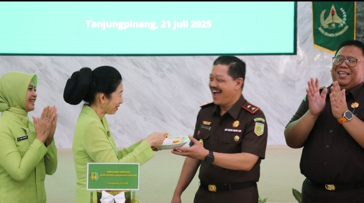 DetikposNew.Com, Tanjungpinang- Ikatan Adhyaksa Dharmakarini (IAD) Wilayah Kepulauan Riau menggelar upacara peringatan Hari Ulang Tahun (HUT) ke-25 secara khidmat di Aula Sasana Baharuddin Loppa Kejaksaan Tinggi Kepulauan Riau. Mengusung tema “Ikatan Adhyaksa Dharmakarini Sebagai Cerminan Diri Dalam Menjalankan Program Kerja yang Nyata”, acara ini menjadi momentum penting untuk merefleksikan peran IAD sebagai mitra strategis Korps Adhyaksa, Senin (21/7/2025).