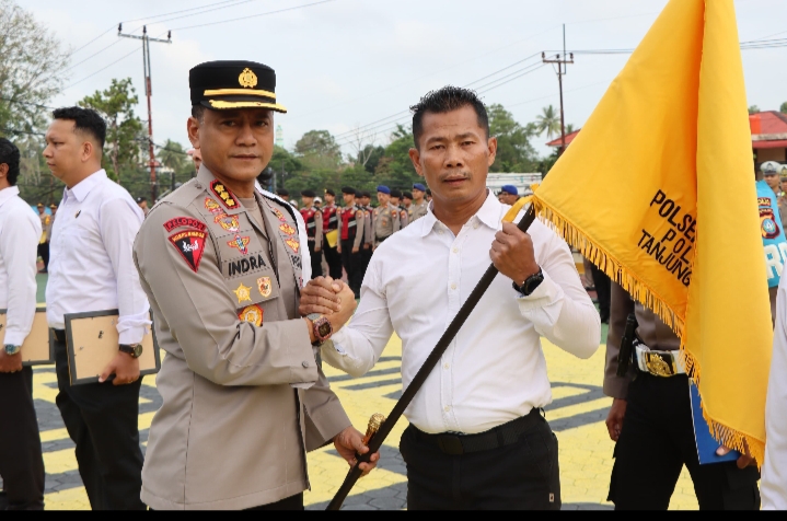 Kapolresta Tanjungpinang Kombes Pol. Indra Ranu Dikarta, S.I.K., M.Si. mengucapkan selamat kepada personel Polresta Tanjungpinang yang telah berprestasi dalam pengungkapan kasus, dan Polsek yang medapatkan penghargaan nilai tertinggi.