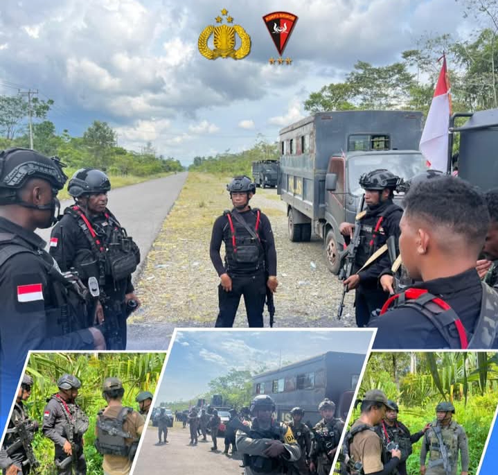 DetikposNew.Com, Yahukimo – Personel Satuan Brimob Polda Papua bersama aparat gabungan yang terdiri dari Satgas ODC dan Polres Yahukimo melaksanakan pengamanan di area seputaran Bandara Nop Goliat, Kota Dekai, Kabupaten Yahukimo.